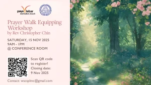 The Peranakan-Indonesian Fellowship meets on the third Sunday of each month, at the Jerusalem Room at 9am. If you know anyone who speaks Peranakan or Bahasa Indonesia, please invite them. All are welcome!
