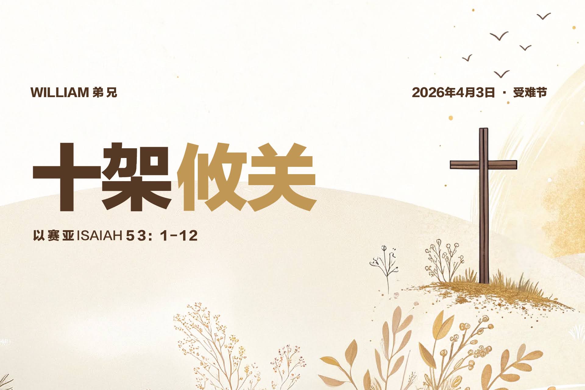 2026年4月3日 (星期五,耶稣受难节) / 圣所 Covenant Chapel / 上午9点实体崇拜及11点15分实体崇拜/直播