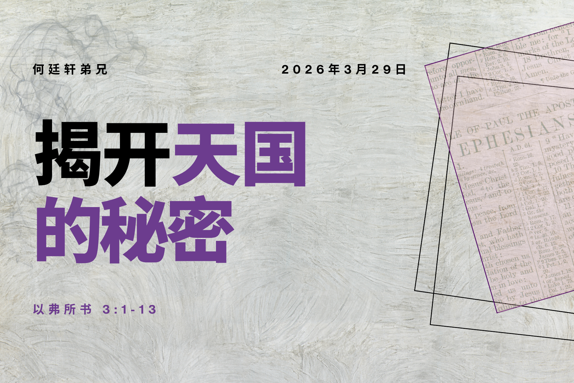 2026年3月29日 / 圣所 Covenant Chapel / 上午9点实体崇拜及11点15分实体崇拜/直播