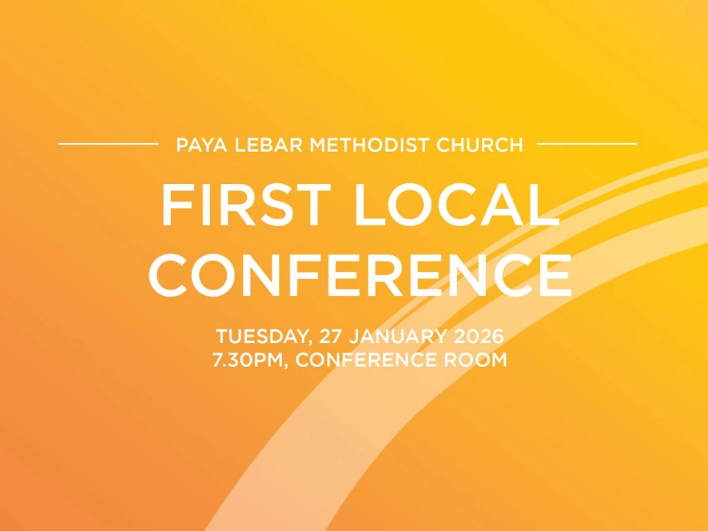The First Local Conference 2026 of Paya Lebar Methodist Church will be held on Tuesday, 27 January 2026 at 7.30pm at the Conference Room, Level 3, Covenant Centre, 5 Boundary Road, Singapore 549954.