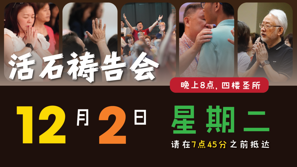 12月份的活石祷告会,将会是以实体进行的敬拜赞美祷告会,欢迎弟兄姐妹踊跃出席参与。来到现场通过以诗歌敬拜赞美上帝的同时,聆听神的声音,祷告和代求。