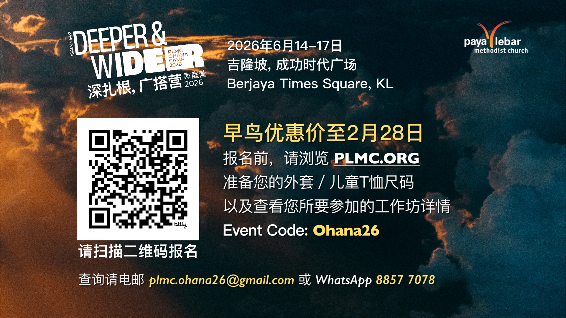 Welcome to Paya Lebar Methodist Church’s Living Stones Mandarin Service! If you are new to our onsite or online service, we would like to get to know you. Please fill in the New Visitor form and we will contact you shortly.