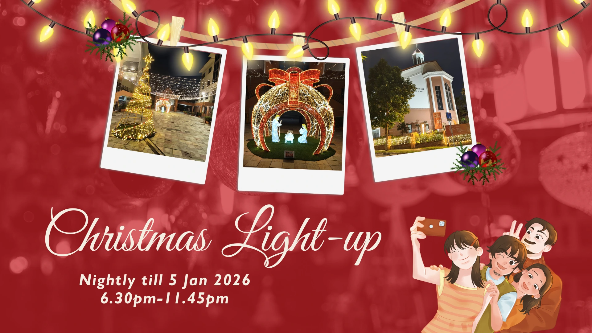Christmas light-up is not only at Orchard Road but also here at Paya Lebar Methodist Church as we remember the birth of our Lord Jesus. There are photo spots at the entrances facing Upper Serangoon Road and Boundary Road, as well as at the Plaza so do snap keepsakes with your church family. Do enjoy the lights nightly around the church and especially at the plaza with the new set pieces commissioned for this year.